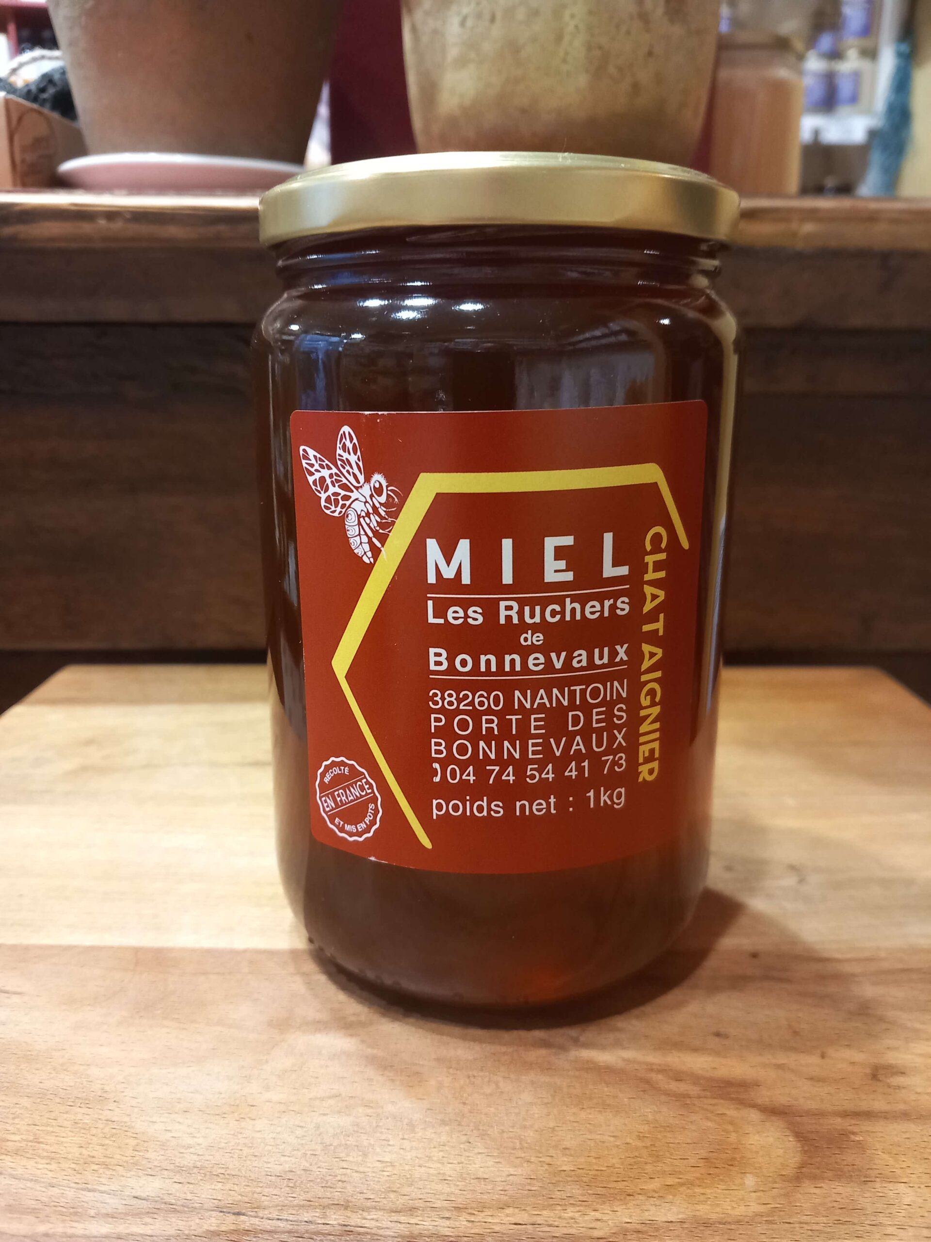 Miel récolté en France, vers la Côte Saint André. Miel liquide à la saveur amère, forte, boisée, qui peut rehausser le goût de certains plats.